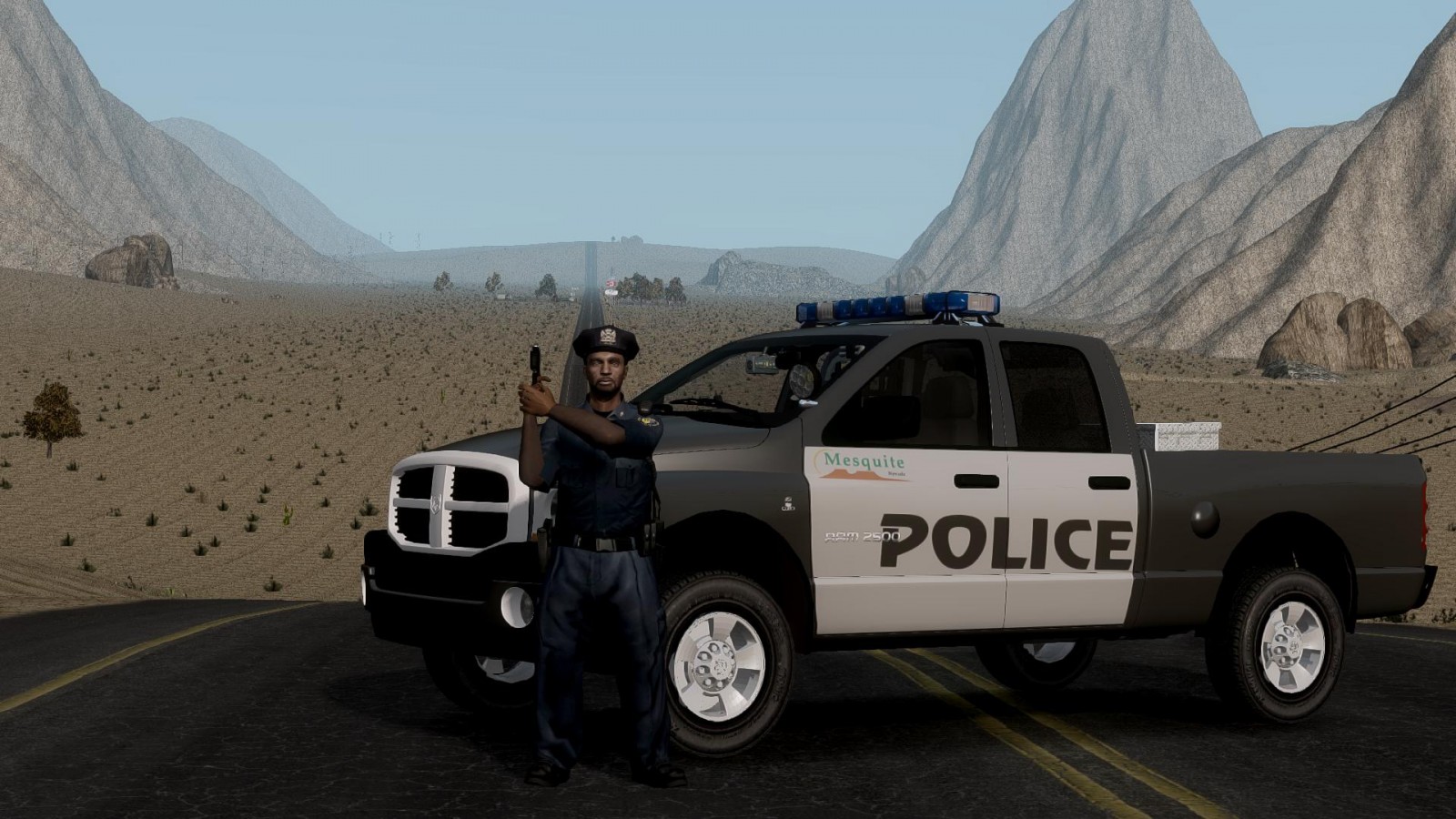Last night recorded my 100th LCPD:FR video using the Route 66 map mod by Nine30! :P This was the thumbnail, well this is the non edited version, but you can see the edited one in the thumbnail of the video below.