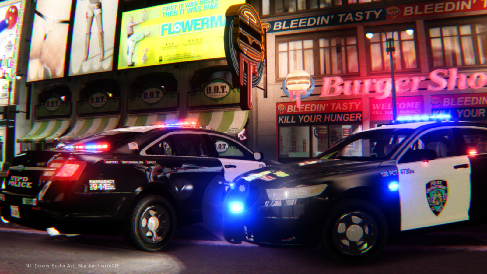 FPI clad in NYPD California Concept livery. Door shot. In front of Burger Shot.