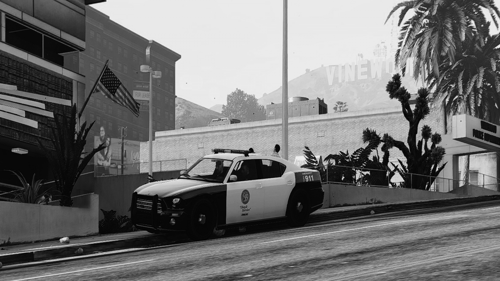LSPD officers getting ready for a patrol in Vinewood.