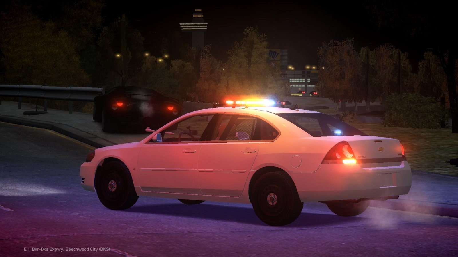 An Infernus has collided with the railing near an intersection in Broker Dukes.
