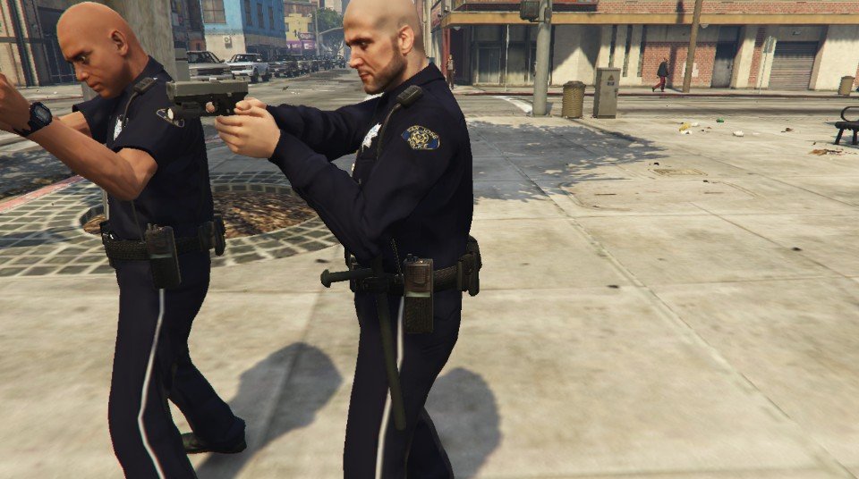 With San Jose PD uniform, of course