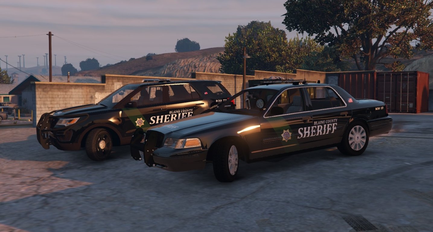 The BCSO has two types of vehicles; a CVPI made by Virzza and a FPIU made by Thehurk. Both have a texture made by BradM.