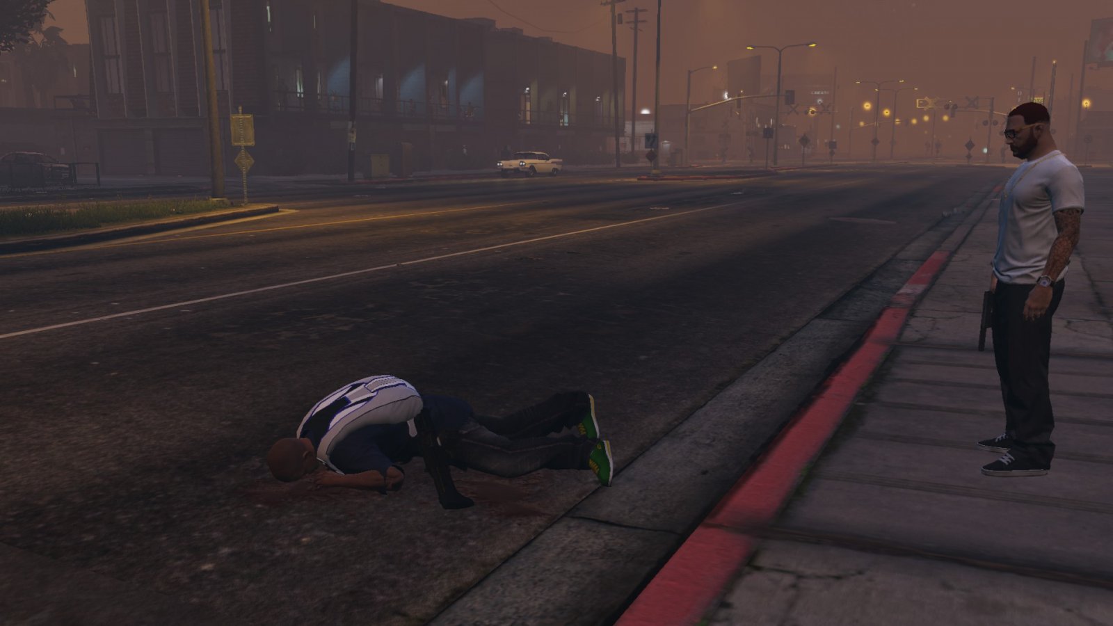 I'm getting set up, and Franklin falls to his death from out of nowhere.