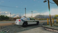 A Blaine County Sheriff's Office Dodge Charger was spotted outside of the liquor store in Sandy Shores. -