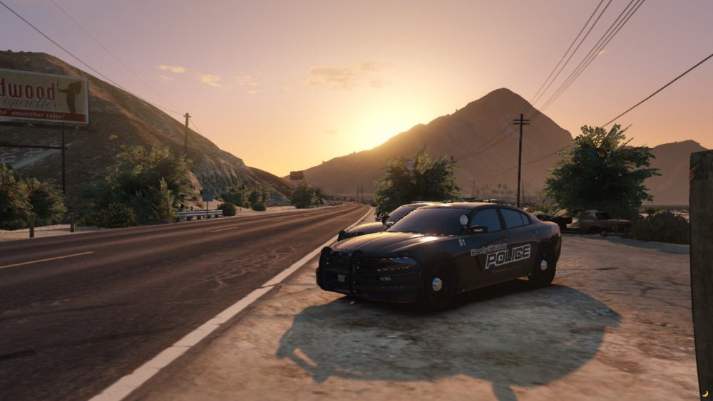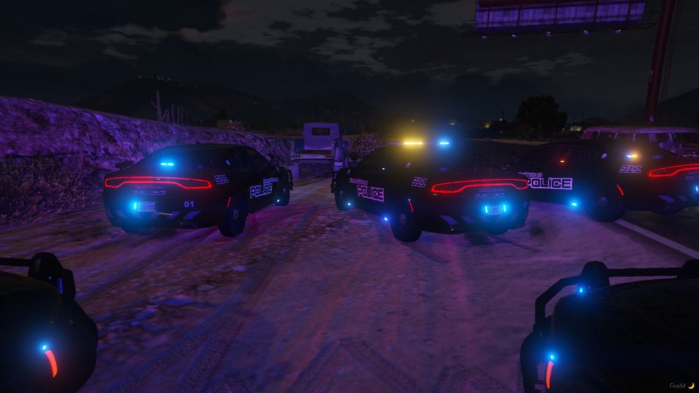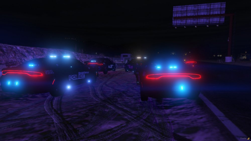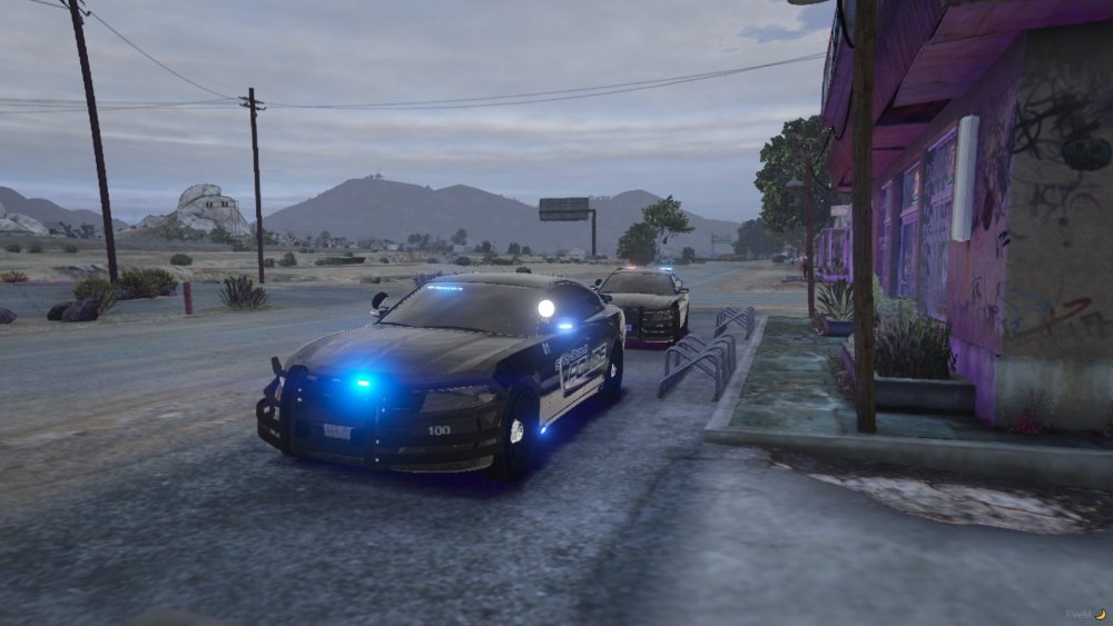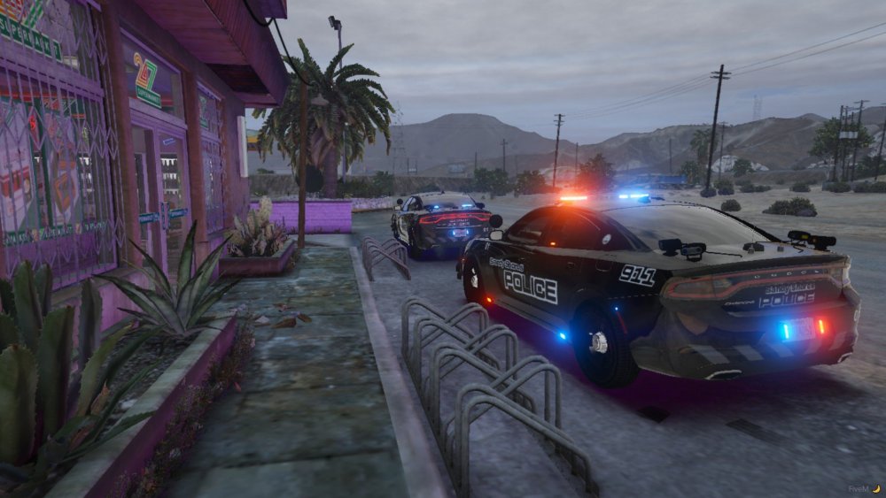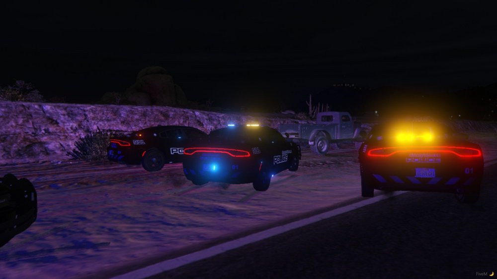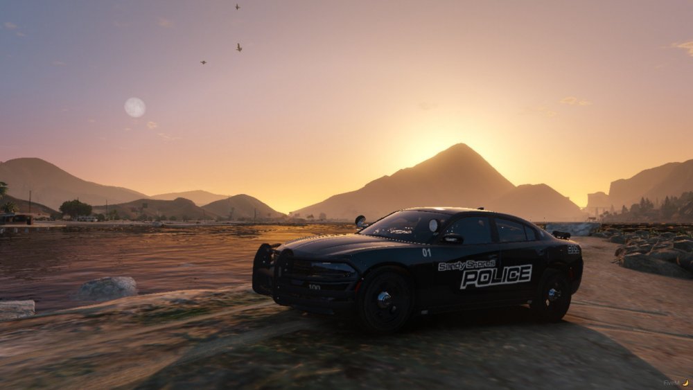 Non Els 2018 Dodge Chargers from my newest WIP pack rocking the Sandy Shores Police Livery, the light setups come with All Blue, Blue and Amber, Red and Blue, and also Red Blue and Amber. The lighting pattern is also custom.