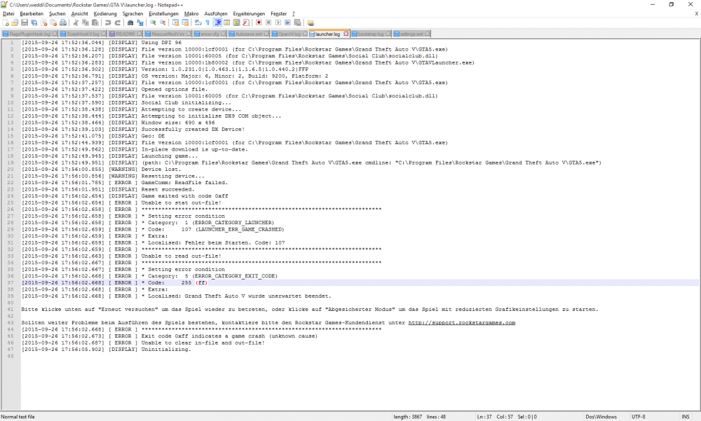 @Officer19: Bootstrap.log Launcher.log- GTA V crash