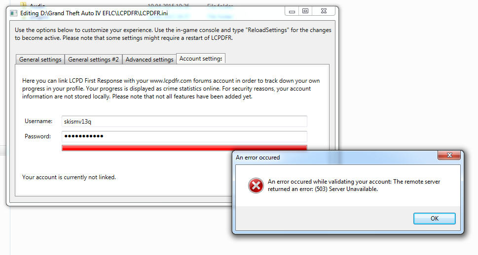 2. I have a problem with LCPDFR 1.1. When I try to log into that config mode after installation I get an error. Before the site LCPDFR to amend not receive this error.