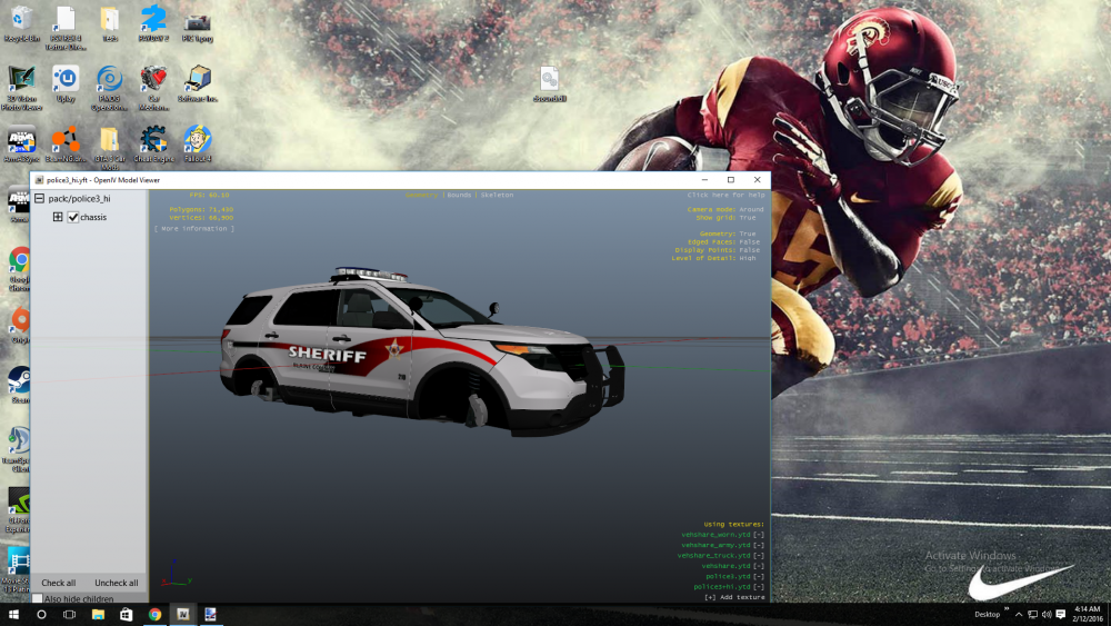 Hey guys, welcome to my first texture set. I really wanted to make a set that used real CHP vehicles, and put the realism of each skin above all else. With that said, there is one part of each skin that is not on current CHP units and that is the 'Thin Blue Line' flag, but I felt it added a lot to the skin and really wanted it on there. The goal for this project is to eventually encompass the entire Los Angeles Emergency Services vehicular arsenal, which will include: Ambulances, Firetrucks, Sheriffs Office, LAPD, and CHP CREDITS: Templates: F5544, Desmond98, PimDSLR, Thehurk Door CHP star: Google, modified by JAbrahamson I also want to thank my brother, for sending me really great photos of his CHP Explorer and some Crown Vics to help me build these as accurately as possible. SKINS INCLUDED IN THIS DOWNLOAD ARE FOR THE FOLLOWING VEHICLES: PLANNED UPDATES: Include New Vehicles 2015 Chevrolet Tahoe Ford F-150 Raptor Los Angeles Sheriffs Department textures Los Angeles Police Department textures Los Angeles Fire Department textures -