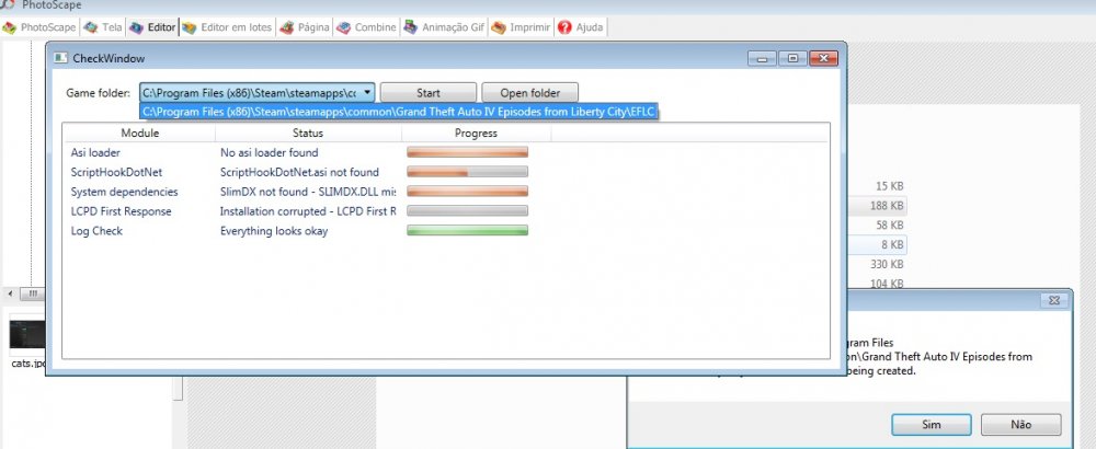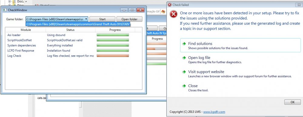 [Asi loader] Using dsound [ScriptHookDotNet] Found [ScriptHookDotNet] Valid [System dependencies] Verifying dependencies integrity [System dependencies] Checking MSVCR110.DLL [System dependencies] Checking dependencies (32-bit required: True) [System dependencies] Resolved KERNEL32.dll to C:\Windows\SysWOW64\KERNEL32.dll [System dependencies] Check passed [System dependencies] Checking MSVCP110.DLL [System dependencies] Checking dependencies (32-bit required: True) [System dependencies] Resolved MSVCR110.dll to C:\Windows\SysWOW64\MSVCR110.dll [System dependencies] Resolved KERNEL32.dll to C:\Windows\SysWOW64\KERNEL32.dll [System dependencies] Check passed [System dependencies] Checking MSCOREE.DLL [System dependencies] Checking dependencies (32-bit required: True) [System dependencies] Resolved KERNEL32.dll to C:\Windows\SysWOW64\KERNEL32.dll [System dependencies] Check passed [System dependencies] Checking SCRIPTHOOK.DLL [System dependencies] Checking dependencies (32-bit required: True) [System dependencies] Resolved KERNEL32.dll to C:\Windows\SysWOW64\KERNEL32.dll [System dependencies] Resolved USER32.dll to C:\Windows\SysWOW64\USER32.dll [System dependencies] Check passed [System dependencies] Checking MSVCR100.DLL [System dependencies] Checking dependencies (32-bit required: True) [System dependencies] Resolved KERNEL32.dll to C:\Windows\SysWOW64\KERNEL32.dll [System dependencies] Check passed [System dependencies] Checking D3DX9_43.DLL [System dependencies] Checking dependencies (32-bit required: True) [System dependencies] Resolved msvcrt.dll to C:\Windows\SysWOW64\msvcrt.dll [System dependencies] Resolved GDI32.dll to C:\Windows\SysWOW64\GDI32.dll [System dependencies] Resolved KERNEL32.dll to C:\Windows\SysWOW64\KERNEL32.dll [System dependencies] Resolved ADVAPI32.dll to C:\Windows\SysWOW64\ADVAPI32.dll [System dependencies] Check passed [System dependencies] Checking ScriptHookDotNet.asi [System dependencies] Checking dependencies (32-bit required: True) [System dependencies] Resolved KERNEL32.dll to C:\Windows\SysWOW64\KERNEL32.dll [System dependencies] Resolved ScriptHook.dll to C:\Program Files (x86)\Rockstar Games\Grand Theft Auto IV\ScriptHook.dll [System dependencies] Resolved MSVCR100.dll to C:\Windows\SysWOW64\MSVCR100.dll [System dependencies] Resolved USER32.dll to C:\Windows\SysWOW64\USER32.dll [System dependencies] Resolved d3dx9_43.dll to C:\Windows\SysWOW64\d3dx9_43.dll [System dependencies] Resolved mscoree.dll to C:\Windows\SysWOW64\mscoree.dll [System dependencies] Check passed [System dependencies] v2.0.50727 2.0.50727.5420 SP2 v3.0 3.0.30729.5420 SP2 v3.5 3.5.30729.5420 SP1 v4 Client 4.5.50709 Full 4.5.50709 v4.0 Client 4.0.0.0 [System dependencies] The .NET Framework version 4.5 is installed [System dependencies] Checking ADVANCEDHOOK.DLL [System dependencies] Checking dependencies (32-bit required: True) [System dependencies] Resolved ScriptHook.dll to C:\Program Files (x86)\Rockstar Games\Grand Theft Auto IV\ScriptHook.dll [System dependencies] Resolved VERSION.dll to C:\Windows\SysWOW64\VERSION.dll [System dependencies] Resolved PSAPI.DLL to C:\Windows\SysWOW64\PSAPI.DLL [System dependencies] Resolved dbghelp.dll to C:\Windows\SysWOW64\dbghelp.dll [System dependencies] Resolved KERNEL32.dll to C:\Windows\SysWOW64\KERNEL32.dll [System dependencies] Resolved USER32.dll to C:\Windows\SysWOW64\USER32.dll [System dependencies] Resolved SHELL32.dll to C:\Windows\SysWOW64\SHELL32.dll [System dependencies] Resolved MSVCR110.dll to C:\Windows\SysWOW64\MSVCR110.dll [System dependencies] Resolved MSVCP110.dll to C:\Windows\SysWOW64\MSVCP110.dll [System dependencies] Resolved mscoree.dll to C:\Windows\SysWOW64\mscoree.dll [System dependencies] Check passed [System dependencies] Checking ADVANCEDHOOKINIT.ASI [System dependencies] Checking dependencies (32-bit required: True) [System dependencies] Resolved VERSION.dll to C:\Windows\SysWOW64\VERSION.dll [System dependencies] Resolved KERNEL32.dll to C:\Windows\SysWOW64\KERNEL32.dll [System dependencies] Resolved USER32.dll to C:\Windows\SysWOW64\USER32.dll [System dependencies] Resolved MSVCR110.dll to C:\Windows\SysWOW64\MSVCR110.dll [System dependencies] Resolved MSVCP110.dll to C:\Windows\SysWOW64\MSVCP110.dll [System dependencies] Check passed [System dependencies] Checking SLIMDX.DLL [System dependencies] Checking dependencies (32-bit required: True) [System dependencies] Resolved MSVCR100.dll to C:\Windows\SysWOW64\MSVCR100.dll [System dependencies] Resolved KERNEL32.dll to C:\Windows\SysWOW64\KERNEL32.dll [System dependencies] Resolved ole32.dll to C:\Windows\SysWOW64\ole32.dll [System dependencies] Resolved USER32.dll to C:\Windows\SysWOW64\USER32.dll [System dependencies] Resolved GDI32.dll to C:\Windows\SysWOW64\GDI32.dll [System dependencies] Resolved WINMM.dll to C:\Windows\SysWOW64\WINMM.dll [System dependencies] Resolved ADVAPI32.dll to C:\Windows\SysWOW64\ADVAPI32.dll [System dependencies] Resolved MSVCP100.dll to C:\Windows\SysWOW64\MSVCP100.dll [System dependencies] Resolved mscoree.dll to C:\Windows\SysWOW64\mscoree.dll [System dependencies] Check passed [System dependencies] No problems found [LCPD First Response] Checking LCPDFR installation [LCPD First Response] No problems found [Log Check] Checking log files [Log Check] asilog.txt seems okay [Log Check] ScriptHookDotNet.log lists one or more errors [Log Check] 2015-05-13 16:52:28 - Initializing ScriptHookDotNet v1.7.1.7 BETA (on GTA IV version 1.0.7.0 with C++ Hook version 0.5.1) 2015-05-13 16:53:17 - Direct3D device created! 2015-05-13 16:53:17 - SEARCHING FOR SCRIPTS... 2015-05-13 16:53:17 - Loading scripts in Assembly 'scripts\LCPDFR Loader.net.dll' ... 2015-05-13 16:53:17 - ...found script 'LCPDFR_Loader.Loader'! 2015-05-13 16:53:17 - ...found script 'LCPDFR_Loader.PublicScript'! 2015-05-13 16:53:17 - DONE! 2 valid scripts found! 2015-05-13 16:53:17 - STARTING SCRIPTS... 2015-05-13 16:53:17 - INFO: Phone number checks are not available! 2015-