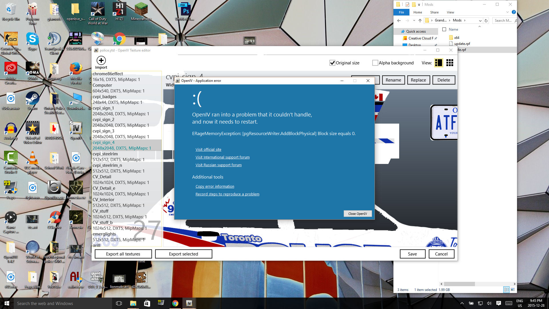 Open Iv Crashing when i attempt to change car skins