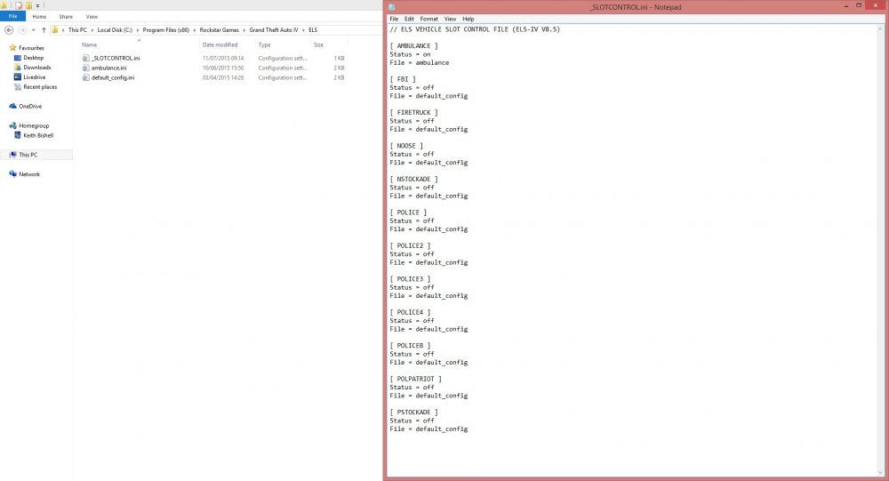 I have downloaded and installed the latest ELS V8.5. However I cannot get this to work. It is as if I have not installed correctly. I have un-installed and re-installed both GTA IV and ELS, but still unable to use. I can use ELS if I use older version which was V6. Can anyone shed any light on this. It has only happened since I had to rebuild my PC, before then it was working fine. Using Windows 8.1 and running the game in Windows 7 Compatibility Mode as an Administrator. As far as I can tell installed and configured correclty, see screen shots below of both my GTA installation folder and my _slotcontrol.ini configuration.