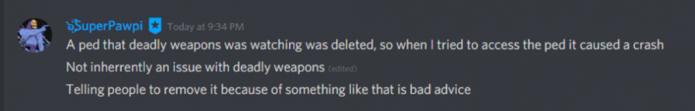Not to start drama here so this will be my only comment on your comment. You have been muted on the RagePluginHook Discord for many reasons. 1. You advertised which is against the rules. 2. You kept interrupting support after being told not to because you had no idea what you were saying. 3. You kept randomly tagging people for support. You clearly never read the rules as you did not know you could advertise. The next time you want to drag a Discord through the mud, please consider that your code is a 1:1 copy with like 3 minor changes from a YouTube tutorial video. If you consider moderating a 50k+ community discord "toxic" when you are the one who broke the rules, then you might need to readjust your perspective. Especially during a Grand Theft Auto V Update, when thousands of people type in the support channel to such an extend, that the slow mode gets set to an hour and you still can't see every message. Thank you.