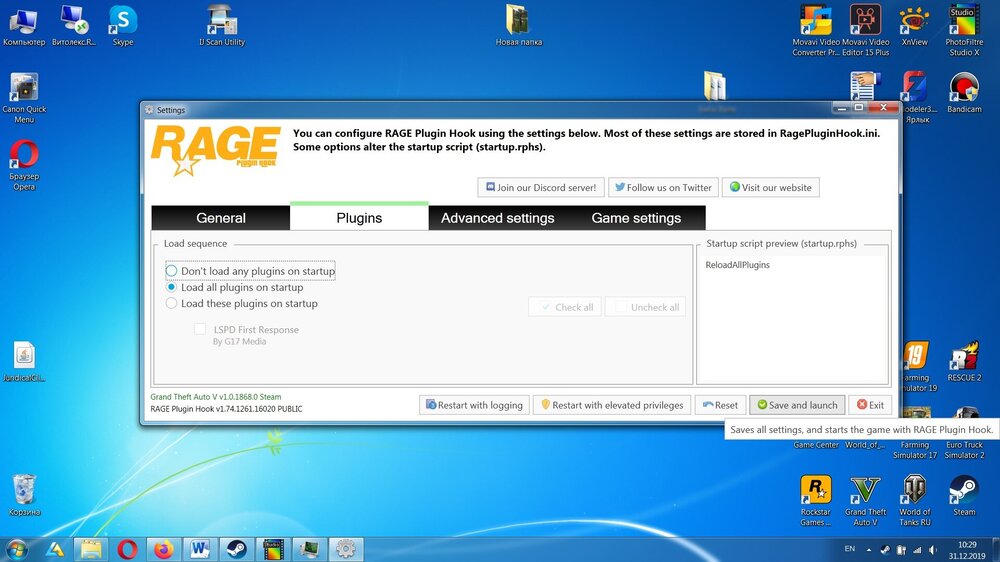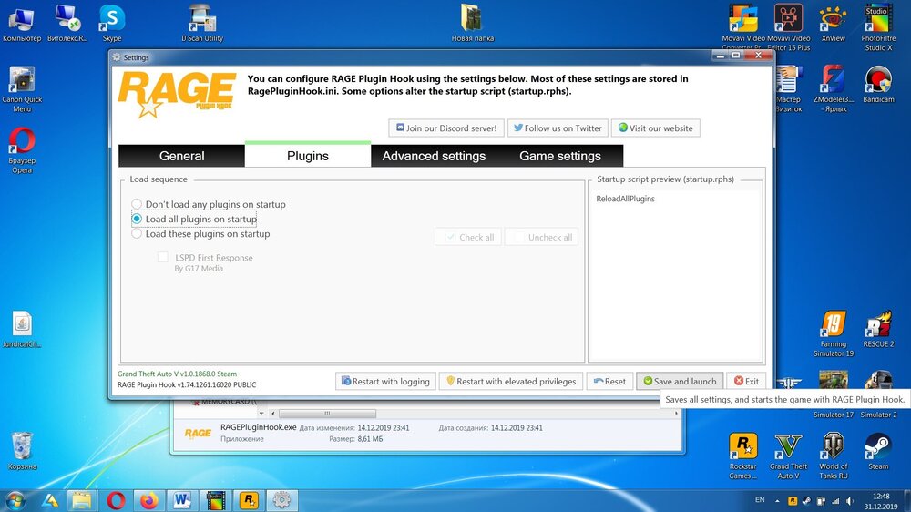 RagePluginHook.logGuys, sorry for the bad English 😃 ... Please help, for some reason I can’t start LSPDFR. The game seems to load everything, RPH also seems to work, but police stations do not appear. When loading the game, it says that the LSPDFR crashes. There are no additional mods, the game is only installed. How to overcome this misfortune? Maybe you need to configure something in RPH when you first start it? RagePluginHook.log I additionally attached screenshots with RPH settings at startup and a screen from the game where the LSPDFR mod cannot load.