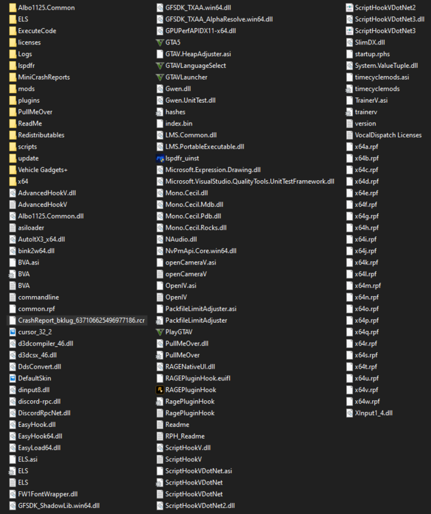 Hello, I have a BUNCH going on in my GTA V directory. I was wondering if anyone could help out and figure out why my game keeps crashing below are 2 log files, one from the Logs folder and one from the main root GTA V folder. Hopefully I can get some help to figure out why I am crashing. RagePluginHook.log