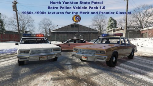 Hey, I'm doing GTA V now! As a member of the VanillaWorks Discord's 2D artists team, I've gained an inspiration to make 1992-based mods. So expect a few more V mods, but I promise I won't forget about the IV scene, I'm not like that. Anyway, onto the mod! Wanna take North Yankton back to the 90s? Now's your chance to enforce the law...90s style! Included are retextures for 11john11's Merit Classic and 1991 Premier, based upon the North Yankton State Patrol, which, in turn, is based on the North Dakota State Patrol, and of note for the Merit Classic, you will have the variation of either the 'modern' or 'retro' style livery, all with numbers on the boot/trunk. I hope you enjoy these as much as I enjoyed making them. Sure, my choices are limited for V - for one, I could be doing British, but I've decided to install my game's cars to a 1992 settings, and my second excuse is that the VanillaWorks team seems to be doing a lot of the work for me. I mean, I can't complain, really, but any suggestions for lore-friendly early-90s cars would be kindly appreciated. The models you will need are located here: Basic installing instructions for retextures apply. A quick note - these will NOT spawn in North Yankton unless you configure mods to add traffic to the North Yankton map. And even still, you will have to reassign the police cars, somehow. Don't ask me about that. This pack will be eventually expanded to include more retro-style lore-friendly vehicles in the near future. For now, this just stands as the beginning of my GTA V modding career. Please do not redistribute without my permission. This mod is exclusive to LCPDFR.com. Enjoy!- 4 comments