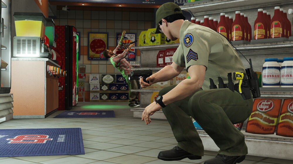 Hello all, has anyone experienced the glitch or bug of the missing doors at the 24/7 in Harmony while playing LSPDFR? I have just completed the call for the store robbery in Harmony (the one with the timer) and somehow the doors from the store are completely gone. This has happened before and came back again today. Also there's 2 store clerks there as well! I don't know what's causing this to happen. I am wondering if anyone else has also experienced this. Here's 2 screenshots for reference (click to reveal). Thanks!