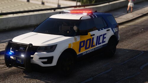 Hey guys! This is my San Andreas University Police Mini-Pack based off of Northern Arizona University in Flagstaff, AZ. I took a long break from texture developing but am glad to be back with some new skills to show off. Included: 2014 Ford Police Interceptor Utility 2016 Ford Police Interceptor Utility Please let me know what you think or if you have any suggestions! Soon I will be doing commissions. If you are interested in having a custom texture pack made or want to keep track of my progress, join my discord: https://discord.gg/B5gzXvrB7k Link to Vehicle Models: TERMS OF USE: -Do not rip/steal anything from the included files. This includes logos, text, decals, etc. -Do not repost or reupload on any site or forum. -Do not claim this work as your own. -Altering of any included files is prohibited. This includes removal of watermarks, changing of logos, text, decals, etc. -You may use this on a FiveM server. All that I ask is that you notify me so I am aware! -