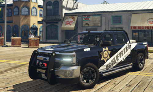 i present to you! the 2017 los santos sheriff skin. I will be doing more vehicles but for now I have this awesome skin for you guys to check out and hope you all like it. and its pretty simple and a small file. and it goes under Silver_sign_1. hope you guys enjoy and give this truck a download from the Model owner 😮 its super nice. and he has it unmarked. so ill leave you the path to his truck right here: if you guys want any police skins for this truck let me know and ill include them in this file ENJOY 😄 -