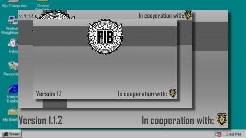 Three variations of FIB computer screen, pretty simple but nice for the eye. To install, change name of chosen file to ,,mainmenu" and move it to ,,LCPDFR" folder in Your GTA directory, replacing the default one. -