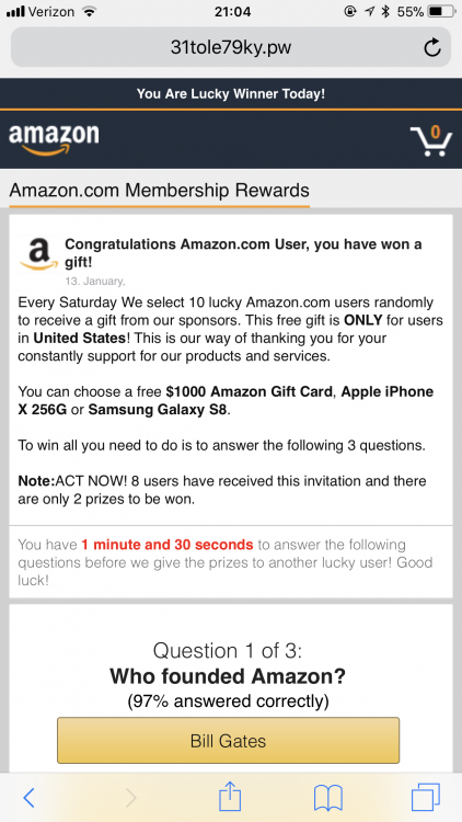 Hey lcpdfr staff, As the title says I sometimes am redirected to a spam ad saying I won a $1,000 gift card from amazon.com. I know this is a spam ad and I have only seen it happen on a mobile device? Is there a way to get rid of this ad from popping up? Thanks