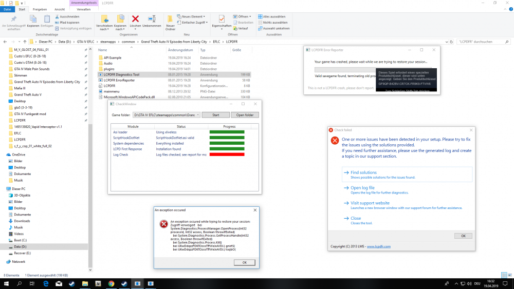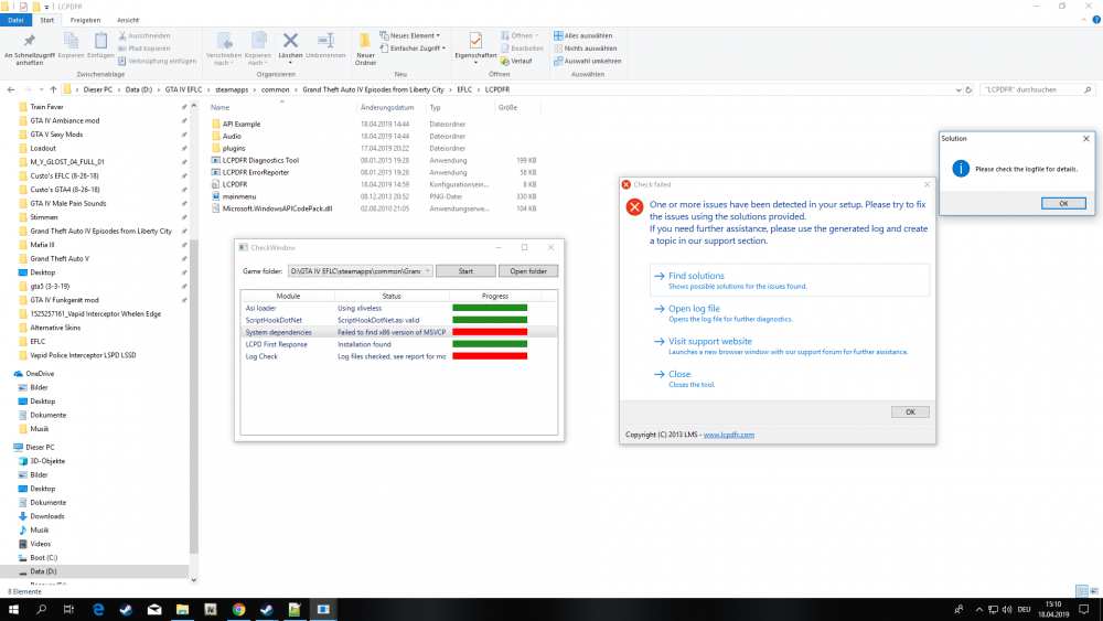 Kann mir einer Helfen? weil LCPDFR Diagnostic Tool meint es hätte kein x86 Version der MSVCP gefunden, obwohl ich es eigentlich hab und hab auch noch ein einen an exception occured (hier ich hab die x86er Version von 2010,2012 und 2013):