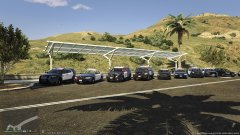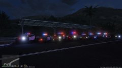 A line of cars from different law enforcement agencies. (LASD, CHP, LAPD) -