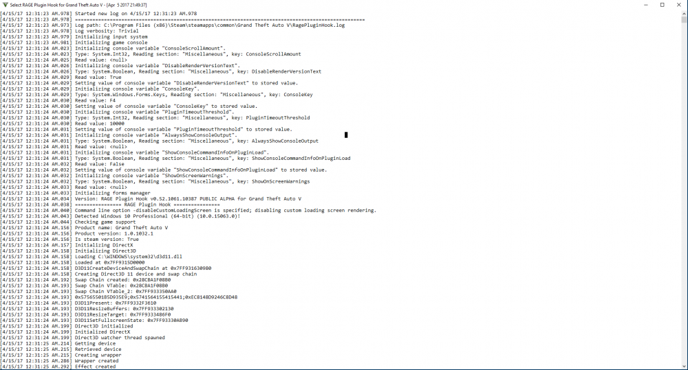 I'm trying to do a fresh install of LSPDFR, ever since I've tried using it the console for Ragehook it is invisible. My settings for rage hook follow. Even when I have no mods and just LSPDR and rage hook the console is still invisible can any one help me? I've posted my Rage hook logs as well for further assistance. I'm lost on what could be causing the issue.