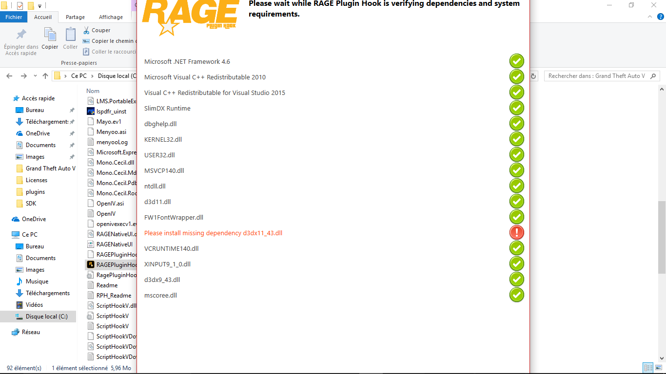 1. bonjour j'ai un probleme avec RPH lors de la verification du debut il me dit qu'il me manque d3dx11_43.dll j'ai verifier partout il est present j'ai meme essayer de reinstaller direct x sans effet j'ai reusi a contourner le systeme mais il mes donne l'erreur mscoree merci d'avance help me pls :'(