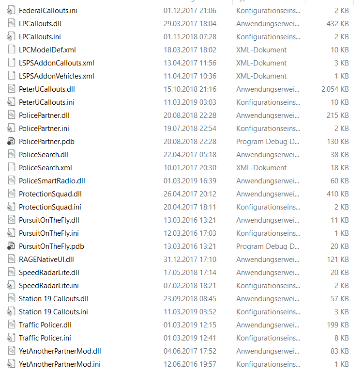 Hey, so basically i was playing LSPDFR yesterday and everything was working fine, so as soon as i woke up today, i turned on my pc to go for gta again, however i then relized that the loading is taking ages (i don´t mean the normal black screen lspdfr loading) i think it´s probably cause of an plugin or something i dont know however it does not load it doesn´t madder how long i wait. Already restarted pc etc and i did not upload any other plugins etc since i played yesterday. so does anyone know what the problem could be? incase it could be caused by a plugin i uploaded all my plugins below. Thanks for every response.