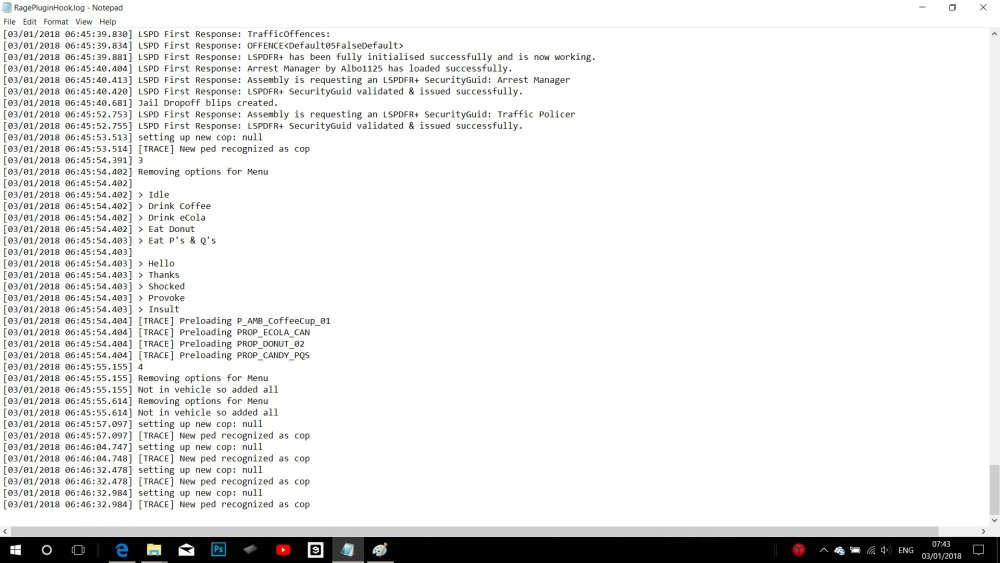 okay. so I uninstalled all mods. I only have lspdfr, traffic policer, assorted callouts, arrest manager and lSPDFR+. No more skins or player models at all. This asshole piece of shit LCPDFR+ still won't read my xml file which is exactly where it should be and which was also changed several times by me since it said it didn't find a valid xml there so I tought it was a file error but nope. Now, I'm not that mad for skins and stuff, I really don't care as long as we can find a way to fix this bs after a week of searches. Albo won't answer either..what can I even do? All I found online about xml was the court cases xml that suprisigly works fine for me. Here is screenshots since I didn't send you one in game.. Please tell me you might have a solution ... maybe you know Albo by any chance? can it be traffic policer at fault? you saw the first message .. and if I remember correctly before I installed LSPDFR+ I had traffic policer which promised a few ticket reasons that never appeared for me. Could that be it? And if so what can I even do since my game is newer than the mod? -