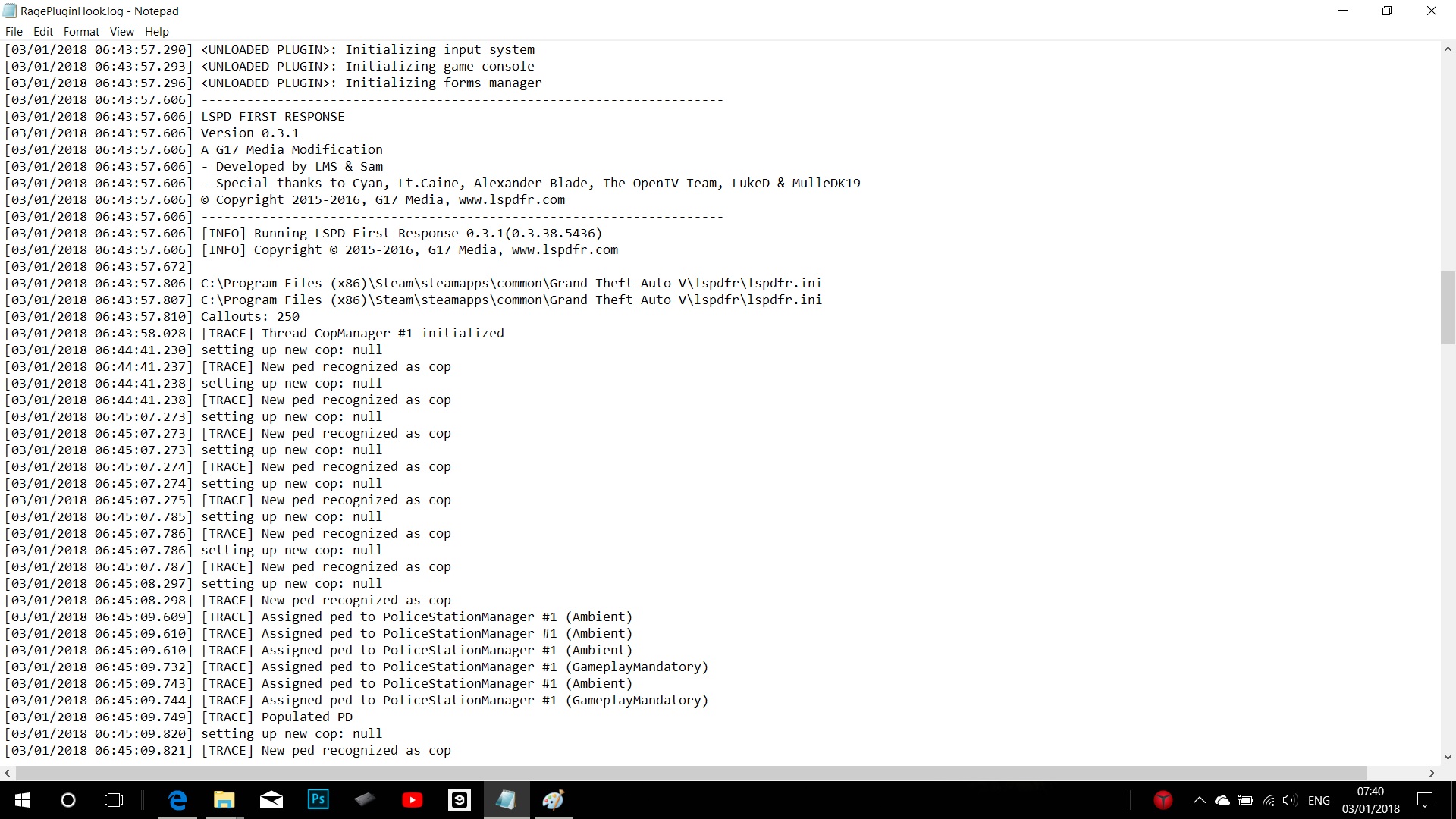 Do you mean the .ini or readme? the .ini only sais this [Miscellaneous] DisableRenderVersionText=True PluginTimeoutThreshold=10000 [Variables] IsDeveloperModeEnabled=False ConsoleKey=F1 Thanks for answering. As I mentioned the only mod I have is LSPDFR so..