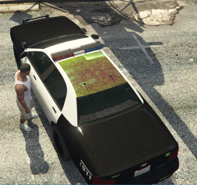 There are a couple of concerns that might of made things go wrong: I am pretty sure that his police cruiser is not the default one. When I was changing the textures in the .ytd. files, I replaced policenew_sign_1 w/ the skin provided, then delete the rest of the policenew_signs that were there previously. Then, I go to Police.yft and find that it didn't work; either the skin is on the vehicle but like a kid threw cans of paint all over the car, or the whole vehicle texture is on the roof of the car.