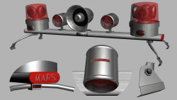 Here is for the Friends of Adam 12 my Policelight TRIO Can Lights Model T-2 . Its look real wit the Textures and is a good quality Model and have complete 5438 Polys. In the Archive is a seperate Folder with the Texture of Amber Glas for the Rearside of the Cans. The standard Color of the Glas is Red. The File in the Archive are in .obj Format so that it can import to Zmod and 3ds Max.