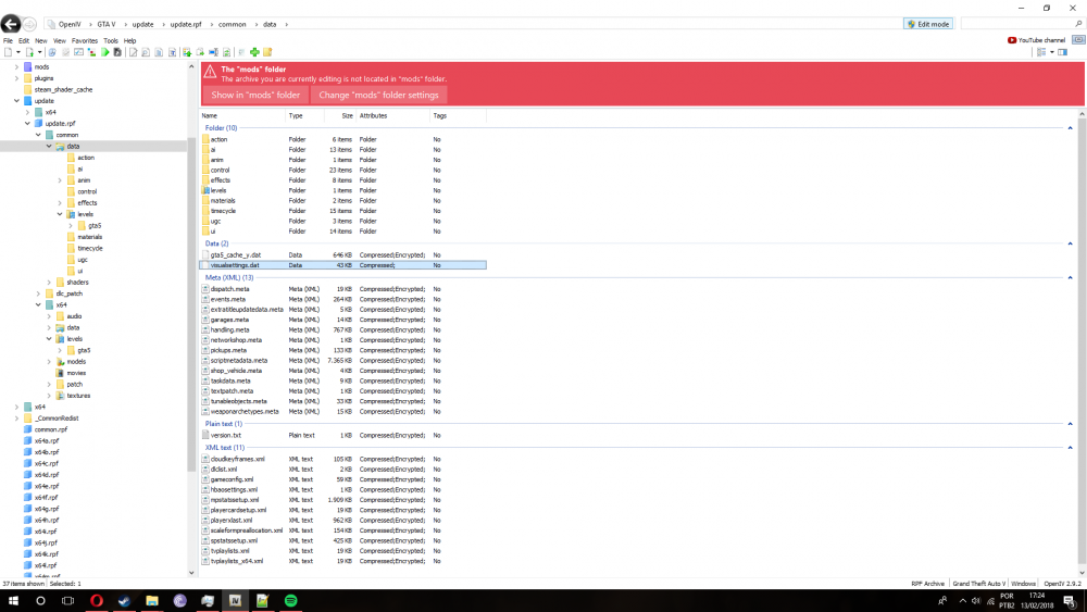 deleted the visualsettings.dat on the OpenIV, and replaced it by the edited one, opened the game and...nothing