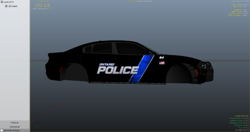 Ontario Oregon Police livery for the 2015 Dodge Charger. This only works on 2015 Dodge Chargers, I've tested this on 2018's and they do end up getting distorted. I may make this skin into a pack in the future for a full fleet. This skin is completely based off of one image, I've never seen an Ontario police car in person. I have no idea what the rear of an Ontario, OR police Dodge Charger looks like, so the rear was improvised. (based image is linked). Please do not reupload without my permission, clan use IS allowed. Only edit if you need to change the number on the door, font used was "Pawl Square Black Italic". For skin requests, please contact me on Discord through my Discord server: https://discord.gg/C9umwn9EWk -