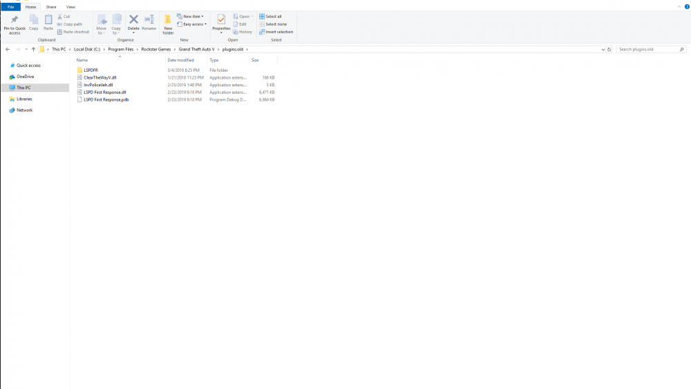 Deleting the plugins folder and lspdfr folder from the main directory works for me. Also if you have the space, create a backup of a vanilla game folder. If you don't have the space just backup everything in the vanilla folder except common update x64 x64a- x64w Name that folder vanilla files or something similar. To go back to a vanilla game just delete everything but those files. Then copy the vanilla files to the main folder and you have a vanilla folder again. It's easy to break your game and sometimes even easier to just start over with a vanilla folder. You also shouldn't ever edit main GTA .rpf files. All edits should be done in the mod folder