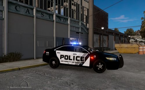 University of Oregon Ford Taurus Police Interceptor Oregon University of Oregon - Ford Taurus Police Interceptor v1.0 **Note** Lightbar used is a Whelen Liberty SX, not the regular Liberty as used by the U of O PD. Please do not re-upload without giving proper credits. Custom Lighting Stages. Here is how they work... Lighting Stage 1: All Rear-Facing Lights Lighting Stage 2: All primary lights, minus Wig-Wags/Takedowns (Only Extra 1 and 4. It's suppose to be 1, 2, 3 and 4. But ELS doesn't work that way) Lighting Stage 3: All lights. Installation: - Pretty simple install. Use OpenIV or SparkIV to replace "police" in your vehicles.img (or whichever other vehicle slot you wish to use this Taurus in. - I recommend using the flash patterns included in the download pack. Pre-configured to reflect the real life patterns used by U of O PD. -
