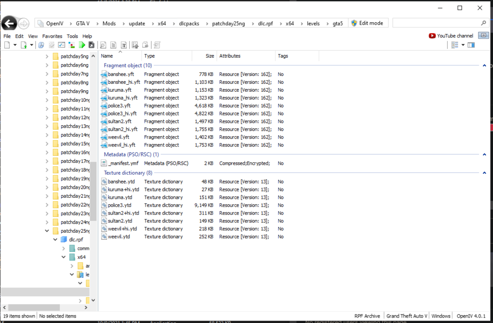 Sorry, I left off the Vehicles.rpf in my previous post. I did install there though. When i start the game, only the vanilla cars show up. Is there something else it could be?