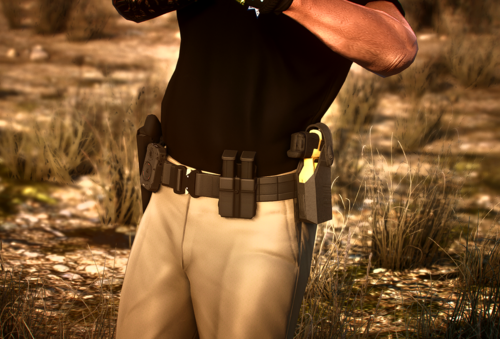 Complete your tactical loadout with this realistic law enforcement duty belt. Designed for immersion and functionality, it features a holstered firearm, dual mag pouches, body cam, and essential accessories for a professional patrol look.
