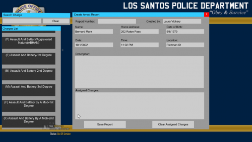 5. Dakota Carson     Finished responding to a UnknownTrouble in Vinewood Hills, Marlowe Dr