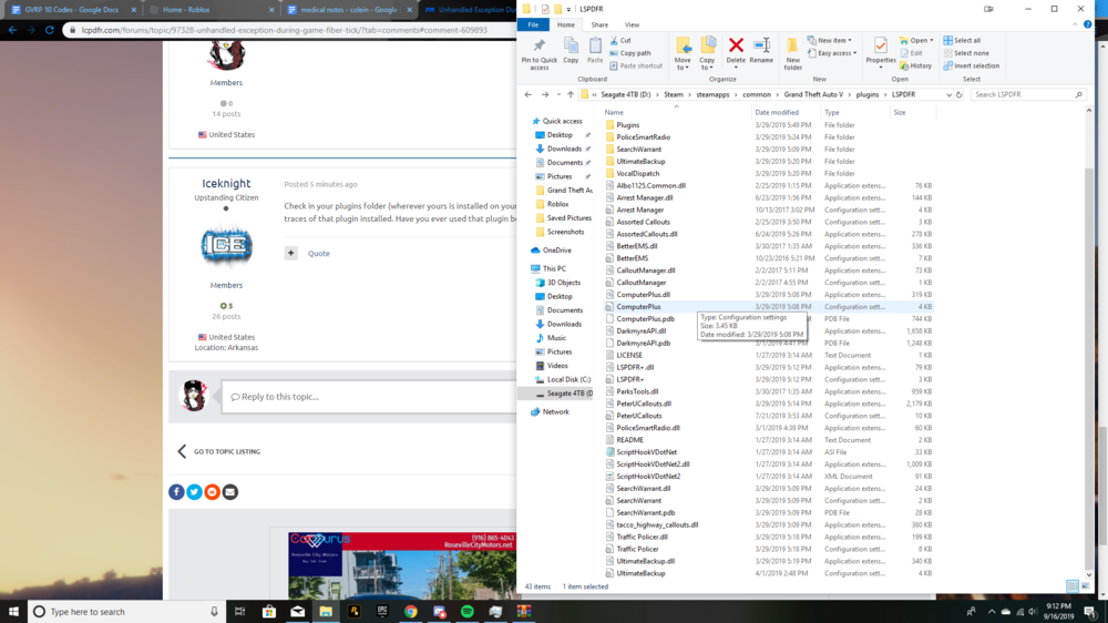 7. Whenever I launch LSPDFR, it loads normally with the black screen and then lspdfr crashes and when I go to the console to see what happened, it says," Unhandled Exception During Game Fiber Tick. It's really annoying not being to play. RagePluginHook_01022019_042339.log
