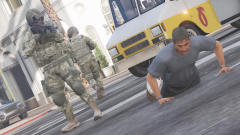Note: I didn't notice the man falling until I got into Rockstar Editor and setup this angle. Him falling was the new reason why I chose this shot. If it wasn't for him, it would've been a close up on the helmets with a small passage of light in the flowing through a small crack/hole in the middle.
