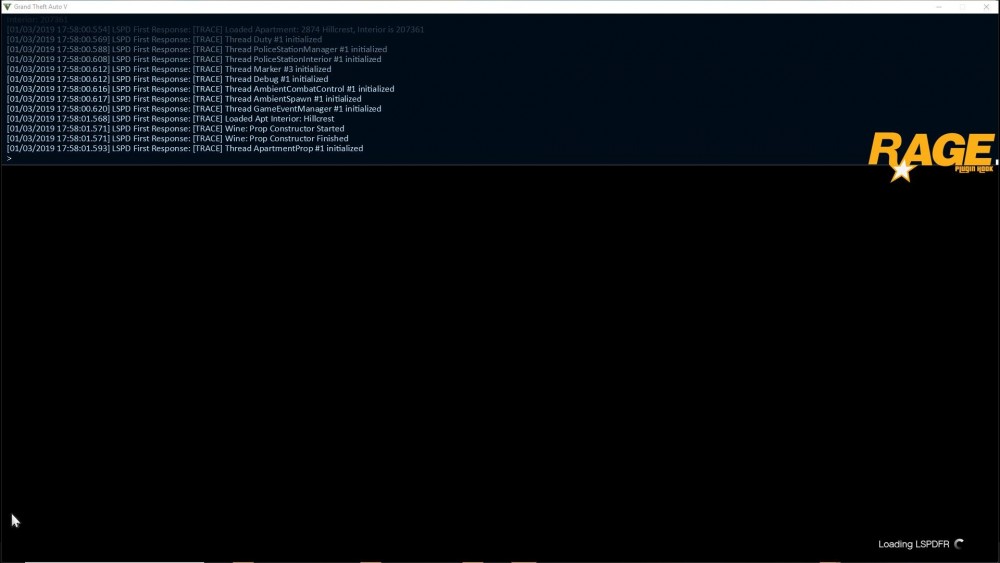 4. Hello everyone, So i succeed to launch perfectly LSPDFR with RPH and it crashed suddenly. So I closed GTA V in the task manager. But now it's impossible to pass the step of the black loading screen of LSPDFR. The circle runs indefinitly... Please help me I don't have other mods btw (Open IV, traner V, etc ....)
