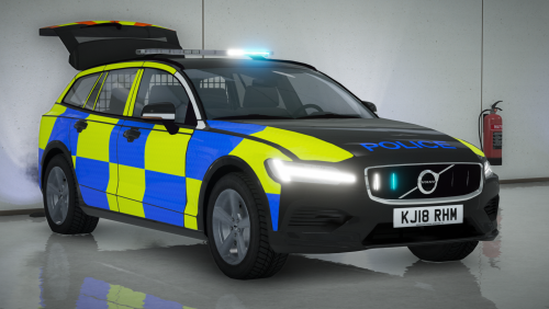 An unmarked and marked 2019 Volvo V60 police demo pack, these do not exist just yet since this generation of V60 is so new. These are generic setups based loosely on the V90 Police demos.