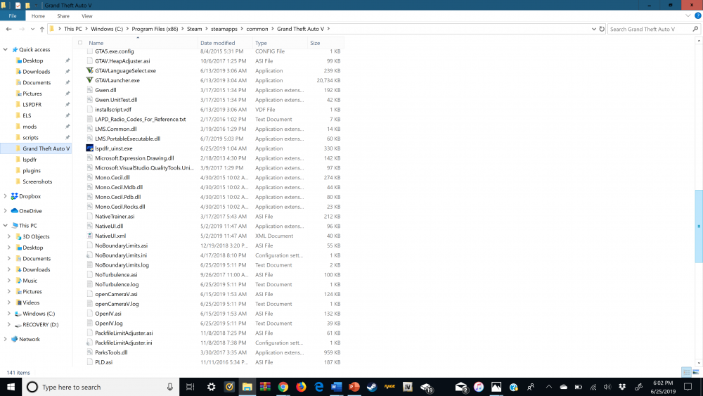 I installed some mods and updated my LSPDFR last night. My Rage Plugin Hook is working fine, I narrowed it down to the problem being within my GTA Main Directory I think. Wanted to send in my directory and ask you guys what could be the cause before I try to fix it and possibly mess anything else up.