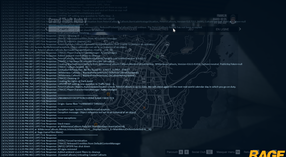36. Hi everyone ! That's my problem. I've decided to reinstall Wilderness Callout, especially for his Medi Air Unit and his veterinarian. The pluggins work perfectly except when I call the vet, LSPDFR crashes... Here is a screen from the RAGE console just after the crash. I hope you can help me. I loved this pluggin at the time.