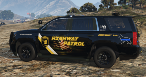 Fictional Replace Texture in Open IV Follow path mods\update\x64\dlcpacks\[name of you vehicle mod folder]\dlc.rpf\x64\levels\gta5\vehicles.rpf\ replace textures in .ytd There are several templates included, you will find a folder called white and other called black, in the folders you will find the skins for the Highway patrol, Police, Sheriff and Supervisor for each vehicle added, each vehicle come with different templates for you to choose, Police Police Supervisor Highway Patrol Highway Patrol supervisor Sheriff Sheriff Supervisor Both come in Black And White versions Dodge Charger 2018 COMPLETE Ford Explorer 2016 COMPLETE Taurus 2016 COMPLETE Crown Victoria 2011 COMPLETE Tahoe 2015 COMPLETE Tahoe 2014 COMPLETE Chevy Impala 2016 COMPLETE Chevy Silverado 2017 COMPLETE Dodge RAM COMPLETE SHERIFF SKINS COMPLETE Skins in this pack Dodge Charger 2018 Ford Taurus 2016 Ford Crown Victoria 2011 Ford Explorer 2016 Tahoe 2015 Tahoe 2014 Chevy Impala 2016 Get the vehicle models from this pack Dodge Ram (use LOL template) Chevy Silverado (use mcmods template) Get the vehicle models from this pack -