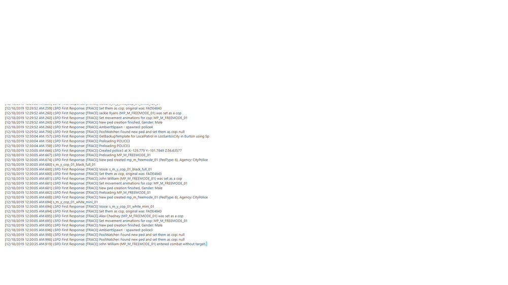 My lspdfr 0.4.3 Crashes when i starts in Loading Screen and i check the logs and there was saying this: Changed to: Mattay Rodriguez And then the LPSDFR Crashes - Gta V crashes with police officers (plz press in Spoiler)