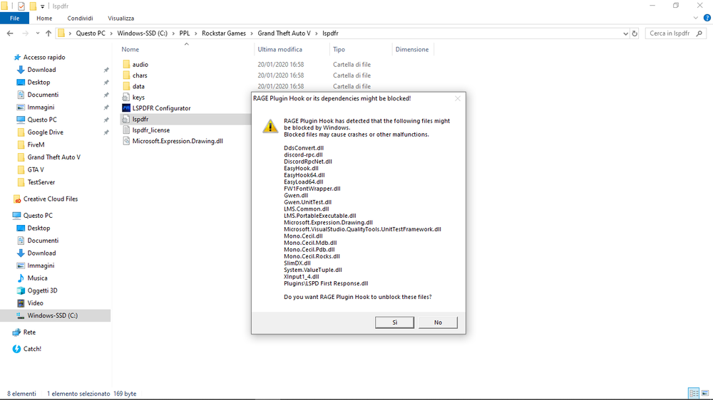 Hi all again. I'm 2 weeks trying to play LSPDFR but it seems impossible. I've downloaded LSPDFR manual setup and i've extracted all on my GTA directory. I've launcher LSPDFR Config and I'd agree the license and the other things. If i try to open RPH before GTA V, during startup sirens, in GTA loading, in GTA SP (every time) RPH stucks on 'Launching game...'. My AV has GTA V direcotyr exclusion and RPH file exclusion. I've Windows 10 and i've disabled Game Bar, Game Mode, and DVR. I've tried to Force Windowed Mode and DirectX11.... I've tried to launch GTA V as admin and RPH not and viceversa. Nothing. I never launcher RPH in my pc in 2 weeks of attempts. I wait answer.. Thanks in advance- GTA Rage hook plugin not working.