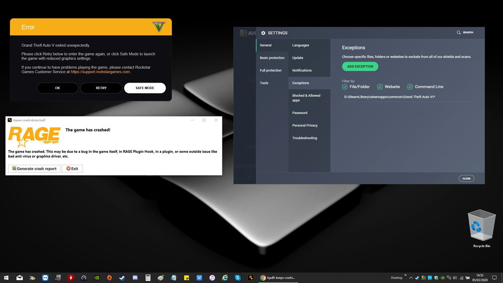 Just crashed to desktop again, this is what comes up every time, both Rockstar and Rage. I even have it excluded via anti-virus. RPH Crash.log
